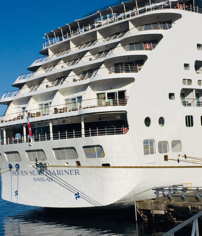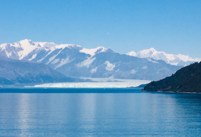We pushed off the dock in Seward aboard the Seven Seas Mariner, headed across the Gulf of Alaska to Hubbard Glacier. A couple comments about cruising… We avoid the large ships with 2000+ people on board. I know that not everyone can afford to do this, but we have been fortunate to be able to enjoy the personal attention that comes with smaller ships. To us, a cruise is a floating hotel room that requires only one unpacking as you travel to many ports of call. And Mrs Bear always reminds me that the art of cruising is to travel to destinations that you would never otherwise see. So if you are going to spend a week or two in Hawaii, you don’t need to cruise there. Conversely, we have done two major cruises to Southeast Asia.