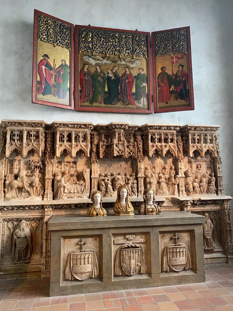 It turns out that the Cloisters is actually an extension of NYC’s Metropolitan Museum of Art. An artist and collector put together an extensive collection of European Medieval Art in the early 1900s. He was, however, a terrible businessman and wound up selling his entire collection to John D Rockefeller in 1930. Which leads me to my second incorrect assumption … While finally realizing that it was in an art museum, I was then impressed that the Met found this beautiful old building to house the collection. Walking through it, I assumed we were in an old monastery or convent. But NO … Mr Rockefeller actually had the this set of Cloisters built in 1931 specifically to house this collection. While marveling at the dedication and thoroughness of matching this exterior to the art it was to hold, I also concluded that some fortunate people have too much money and time on their hands. Another reason for my assumption that this was a monastery had to do with the interred remains in the photo above. I wonder if John D brought them over for effect as well???