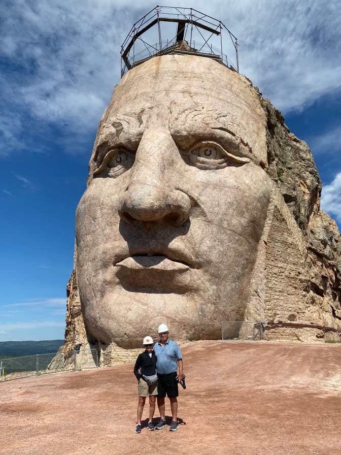 Korczak married a woman who had come to the project as a volunteer. He and Ruth had 10 children. Most have stayed and taken leading roles in the project. A visitor’s center, museum of Native American art, and an educational center have been constructed. Visitors can tour the center and view the monument from afar … Or an extra $4 will allow a bus ride to the mountain base. These buses and our van do not run when active blasting is underway. So visiting on weekends is actually good.