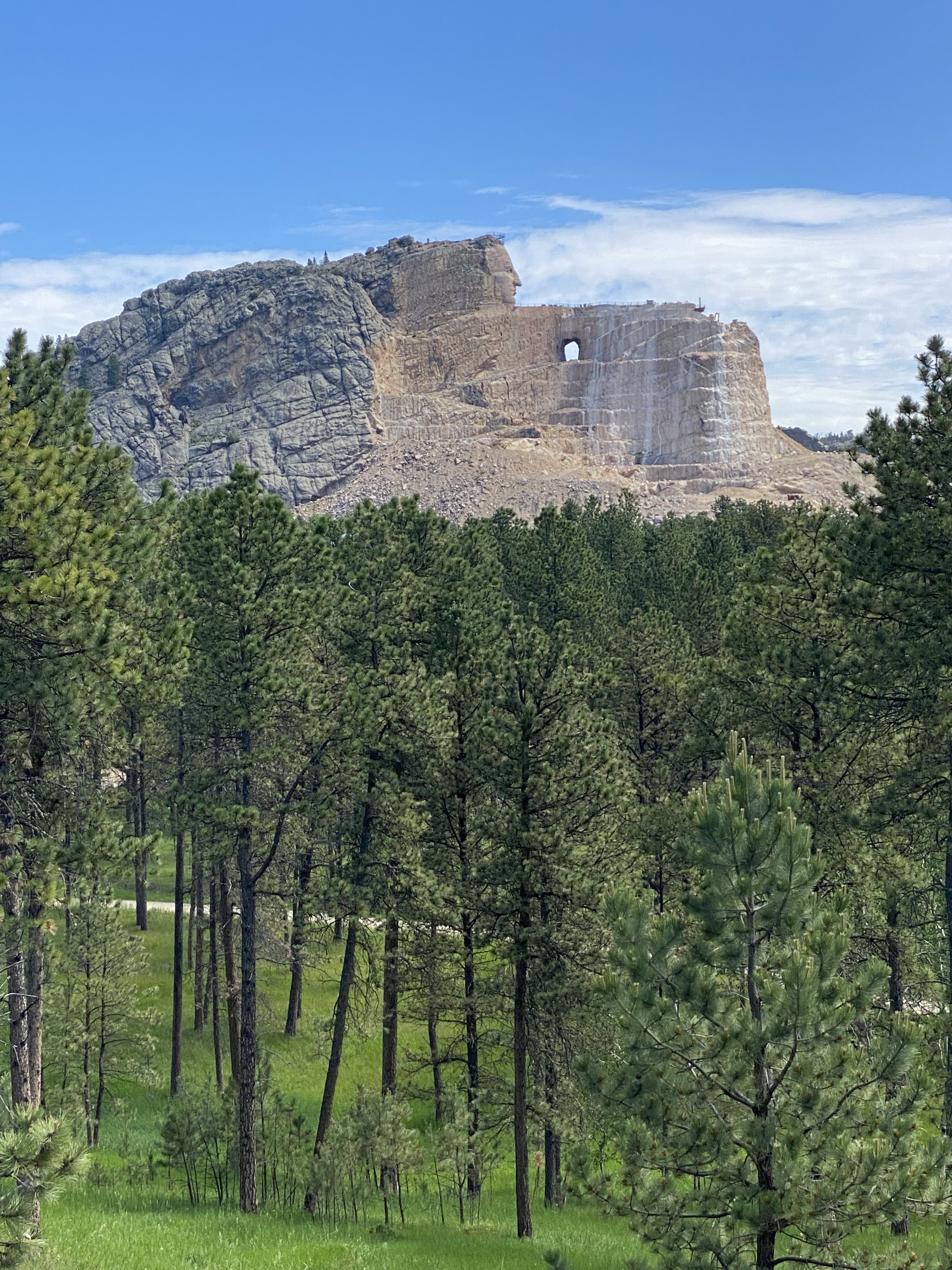 So hiking the Black Hills and visiting Mount Rushmore was how we finished our day. But we began at the Crazy Horse Memorial, which as the crow flies is just a few miles from Rushmore. This project began after a Polish immigrant, Korczak Zialkowski, won a sculpting award in a national contest. This led to a meeting with the Lakota Chief Henry Standing Bear. Zialkowki was asked to consider carving a monument for the Lakota in their sacred Black Hills. WWII interrupted the proposal as Korczak enlisted and landed on Omaha Beach. After the War, he turned down government offers to carve memorials in the Allied cemeteries overseas, and accepted Standing Bear’s offer.