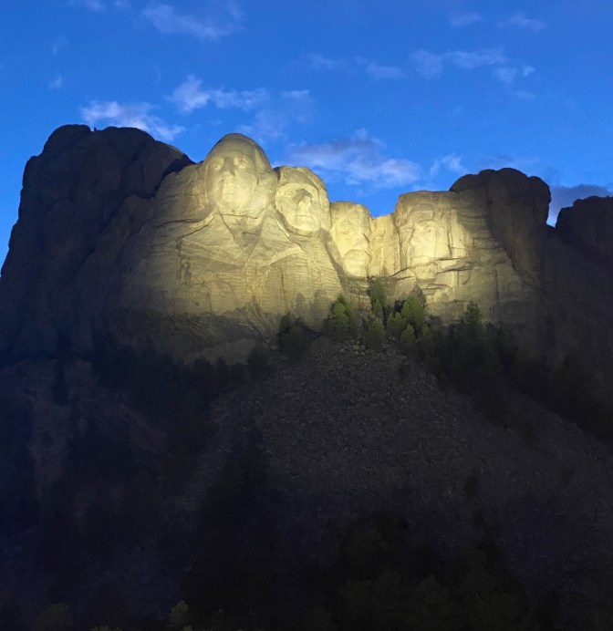 Mrs Bear wanted to visit Rushmore just before dusk to avoid the crowds, hear the USAF band, and watch the lights come on.