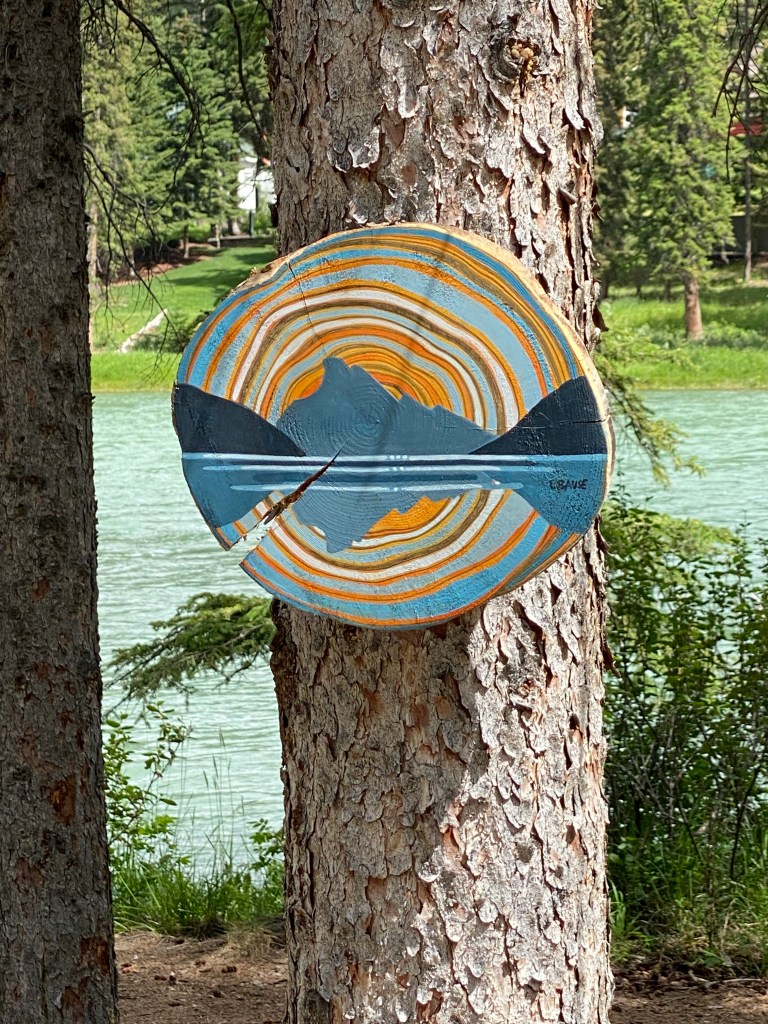 Along the trail, the town of Banff commissioned local artists to exhibit their work. It seems that everything has a nature / ecology theme. I began to walk from exhibit to exhibit, and the art really added to my enjoyment.