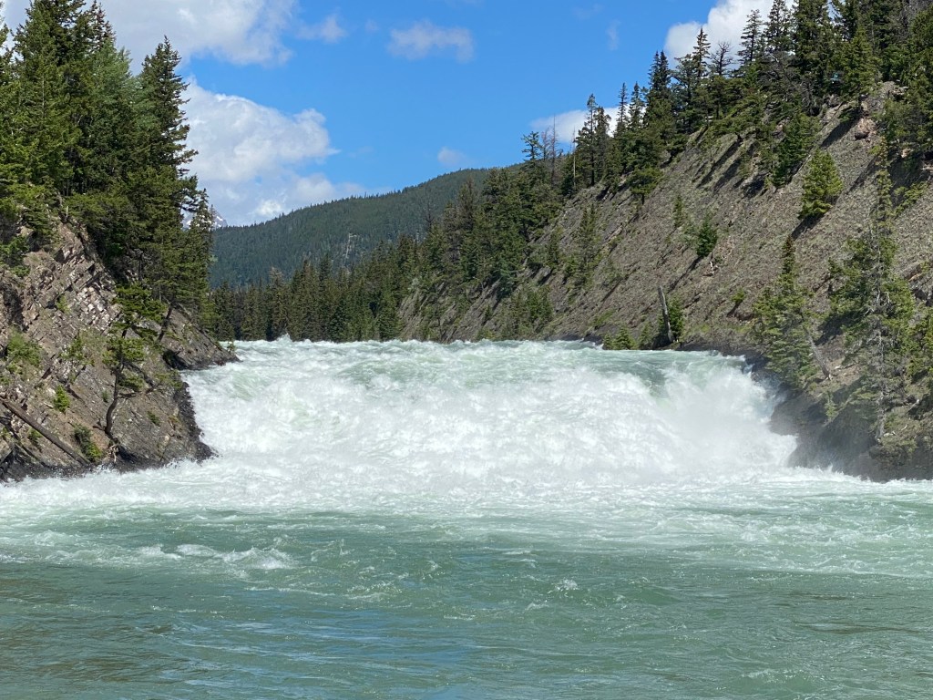 While Mrs Bear ascended to the mountain vistas above Banff, I took the path more travelled: The trail along the Bow River. I didn’t know a lot about the Bow River before coming to Banff. I assumed its headwaters were in the Canadian icefields, north of the valley … And as shown in the pic below, I was correct. I had also assumed that, like most of the important American rivers, the Bow was lengthy. On this, I was wrong. It’s length is a little less than 400 miles. From Banff, it flows east to Calgary, before merging into the South Saskatchewan River. There its primary roles become hydroelectric power and irrigation. But in Banff, there is no hint of a prairie river … It is glacier fed, majestic, and free flowing.