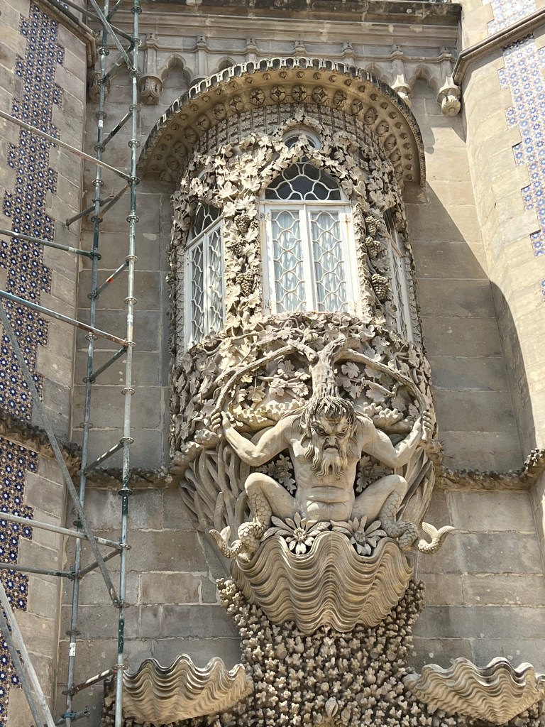 We took an Uber to the entrance of the Peña Palace, which sits near the top of a mountain that overshadows the town. On a clear day, the Palace can be seen from Lisbon. The site was always a favorite of Portugal’s royal family, who replaced the church initially erected there with the construction of a monastery in the early 1500s. Severe damage in the 18th century by lightning and the Great Lisbon Earthquake of 1755 leveled everything but the chapel. The monastery remained in ruins until King Ferdinand ordered the construction of a palace that would serve as the summer residence of the royal family. Construction occurred between 1842 and 1854. It was occupied by the ruling families until 1910 when the Republic of Portugal was established and the monarchs went into exile. Portugal’s last Queen, Amelia, spent her last night in the country before heading into exile. Since then, the Palace has become a cultural monument to be visited by the Portuguese citizens.