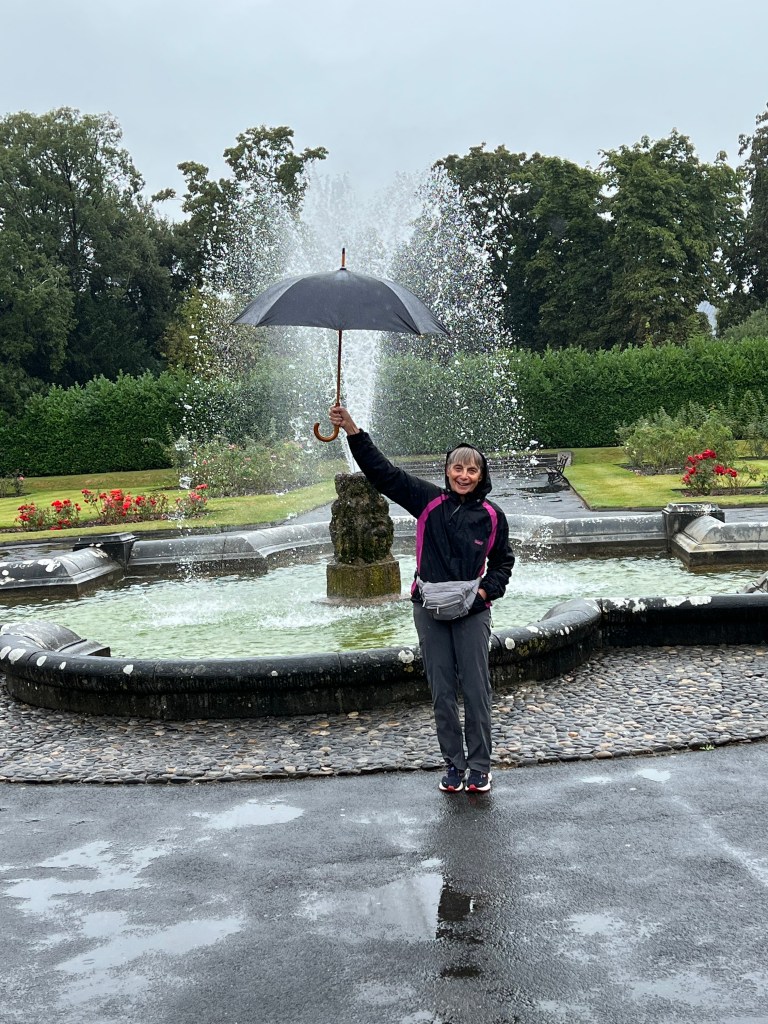 Finally, here is Mrs Bear having fun by trying to be Mary Poppins by the Castle fountains. A great way to end the post.