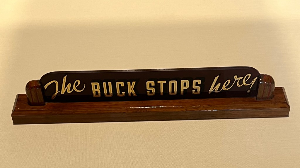 The photo above is the recreation of Truman’s Oval Office. Prior to Truman, there were no Presidential museums or libraries. Outgoing Presidents kept gifts received during their tenure, and kept all their papers. These papers ended up everywhere or lost. Harry believed that these papers and gifts belonged to the American people. After leaving office, he became the first President to construct a library and museum of his years in office, a tradition that continued until Trump.
