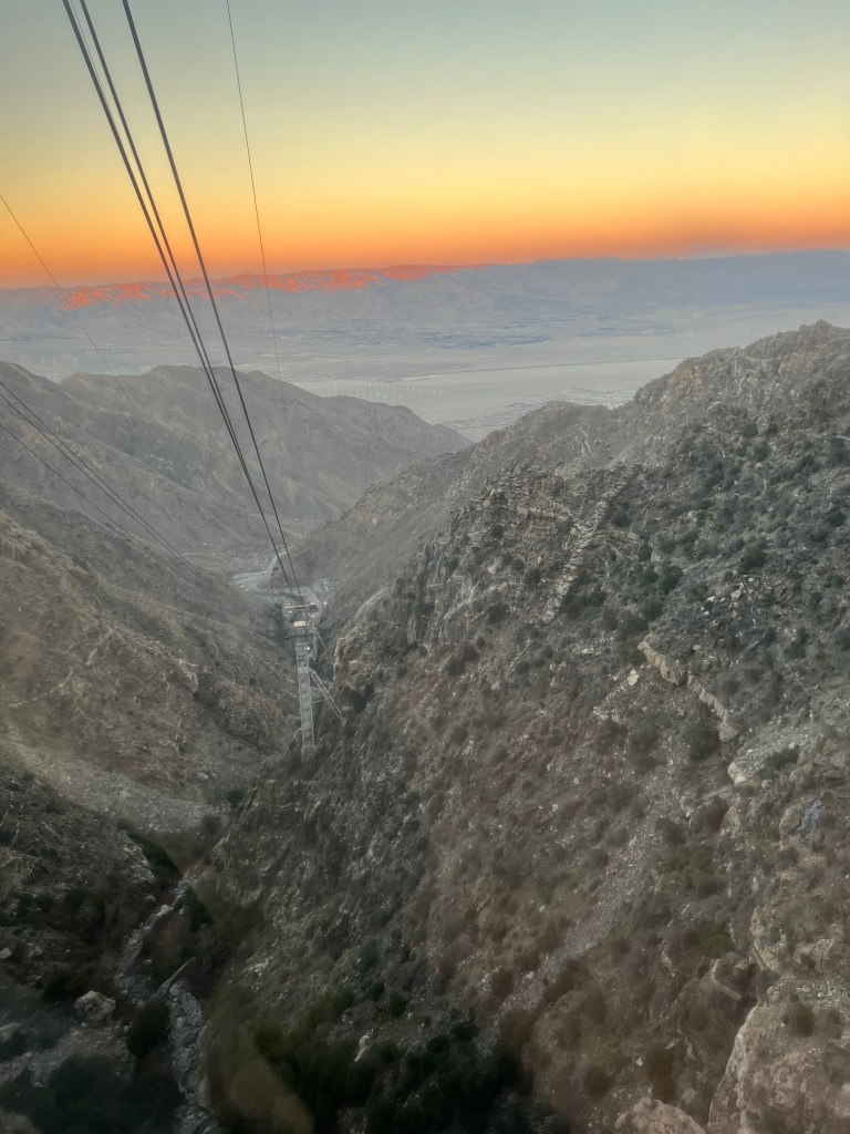 We plan the ascent ride up a little before sunset so that we can watch the lights come on in the valley below.