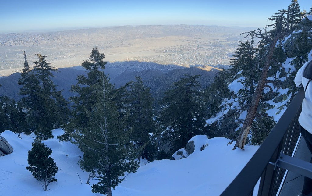 The temperature at the top is roughly 40 degrees cooler than the bottom. Some people bring their kids up to play in the snow. We saw a couple people with cross country skis. Below is a pic from the top showing the snow quantity. In the summer, people actually hike up or down the mountain. If you climb up, you have to buy a half ticket to take the tram down. Since they don’t check tickets at the top, I asked the security guard how they know if you walked up … “ They are really sweaty.”