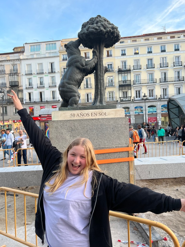 Madrid seems to have a “thing” about bears … There were multiple opportunities to pose with brown, black, and polar bears, which given my name, was a nice find. My grand daughter also posed in front of one of Madrid’s symbols, a bear eating out of a strawberry tree: