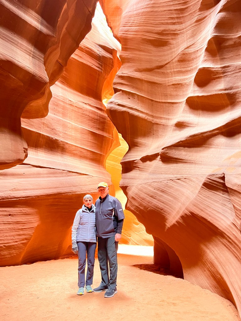 Four years ago, Mrs Bear and I visited Page on our two-month retirement cross country road trip. However, our flexibility to do everything we wanted was affected by Mrs Bear’s broken leg in Sitka. So we recently made a return trip to Page to see the Antelope Slot Canyon. As you can see from the above photo, Mrs Bear healed up, and has been banned from mountain bicycles…
