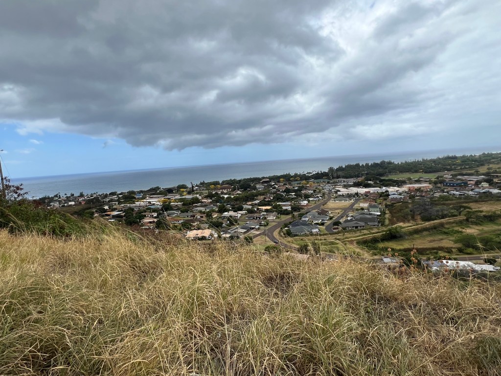 To visit Waimea from Kauai’s north shore is a major undertaking. Referring to the map below, we were staying in Princeville. The road ends at the Na pali Coast a few miles further on. My wife and granddaughter did an escorted hike into the coastal wilderness that put them close to the other end of the road. We had to drive around the island which takes at least a couple hours. Most of Kauai’s hotels are on the south shore which is much more accessible to a canyon visit.