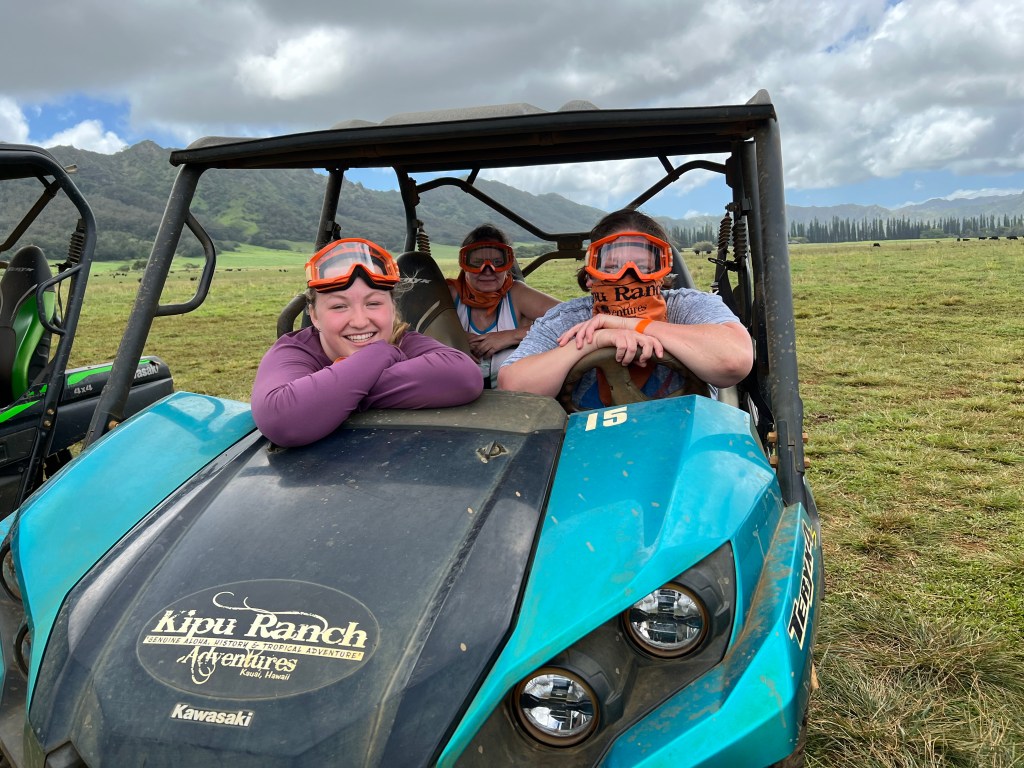 Much of it is a flat plain on a bluff above the ocean. The early part of our ATV ride traversed this plain, past grazing cows. There is no more sugarcane or pineapple grown here. Instead, ATV rides, guided hikes, and zip lines weave their way past the cows.