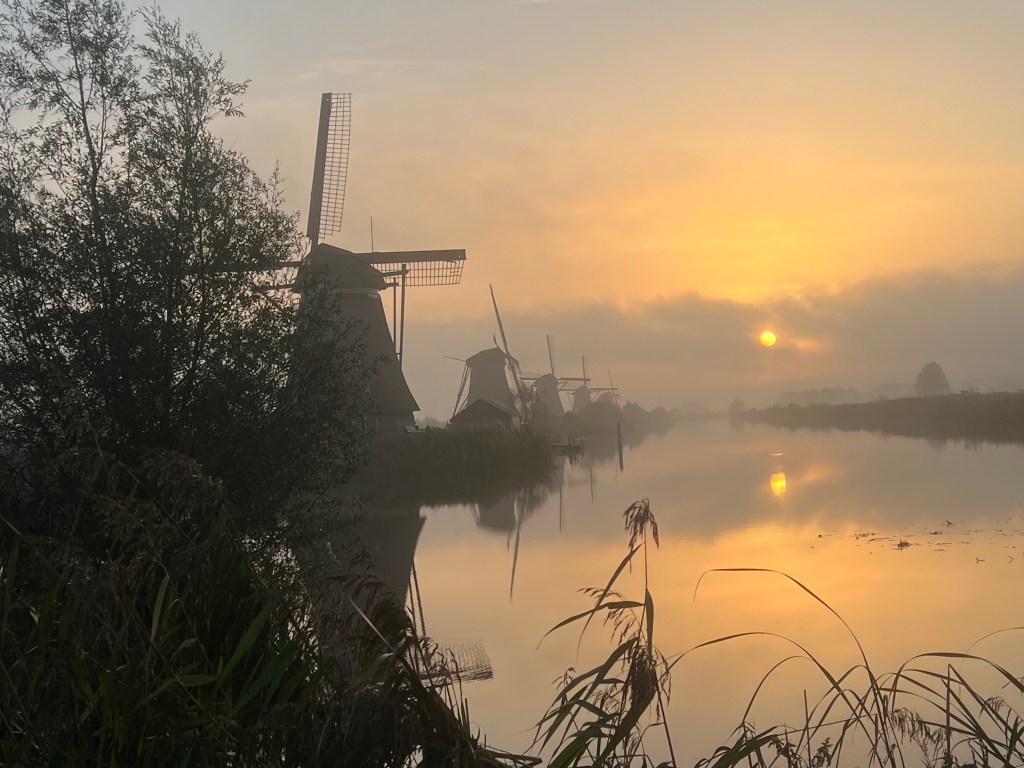 The day started out cool and foggy, but was also very still, which allowed great reflections of the windmills on the water. There were 19 windmills, almost all built in the 18th century. In the 1950s the windmills had been put out of service and were falling apart. A faction of the town wanted to tear them down …others wanted to restore and maintain them. Luckily the restorers won. Families were allowed to move in and reside in the windmills, but they had to include a miller who ran the arms at least 60,000 rotations in a year. The service people were called “ millers “ because one of the primary jobs of the windmills was to grind grain.