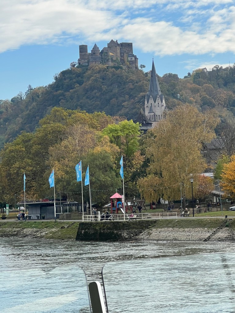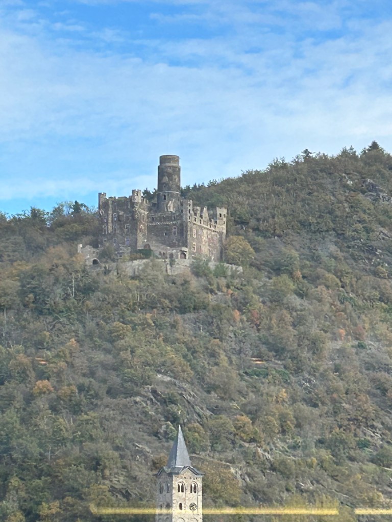 After visiting Koblenz, we settled in back at the ship for a slow rolling down the Middle Rhine. The river narrows and the shorelines steepen. And we were treated to a string of medieval castles. This is perhaps the main highlight of sailing the Rhine.