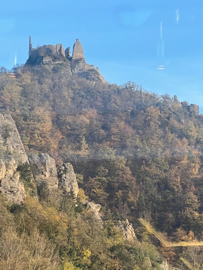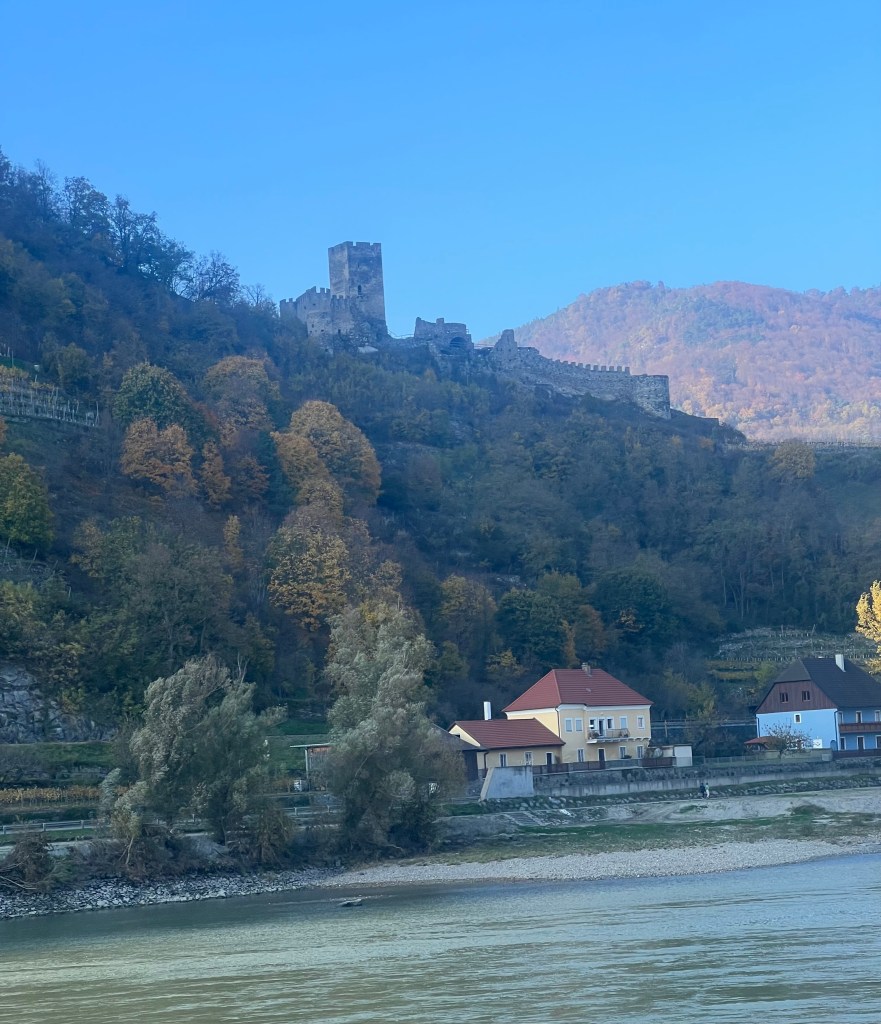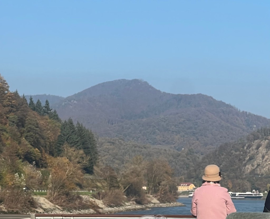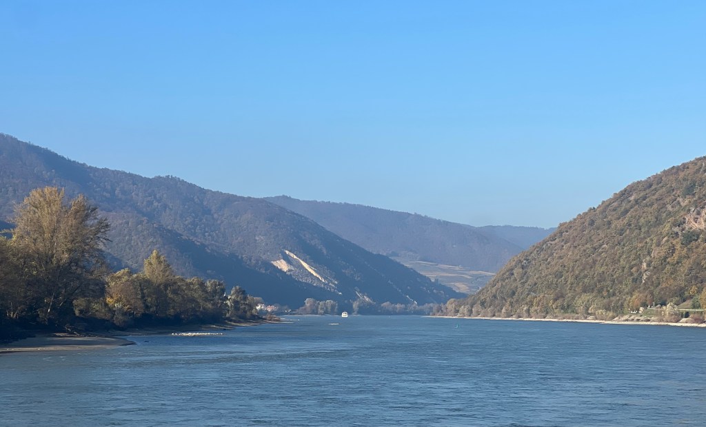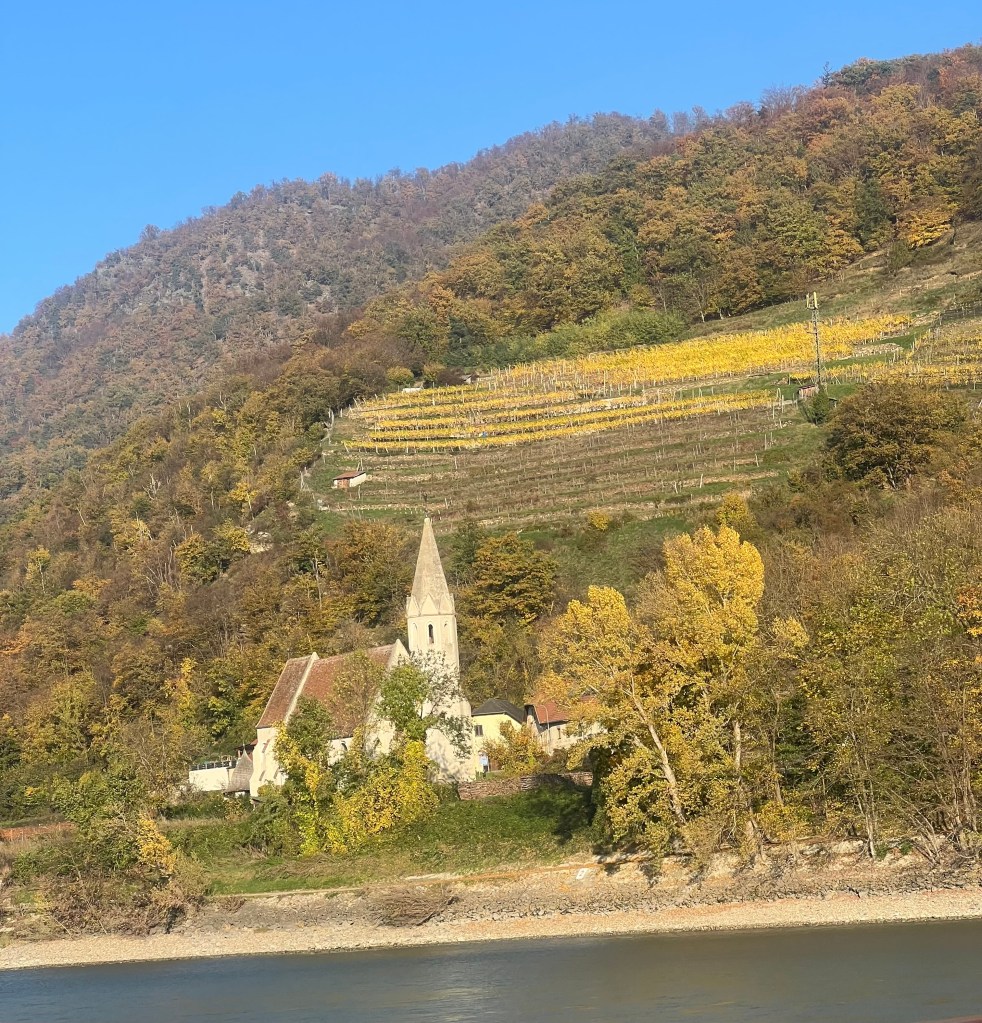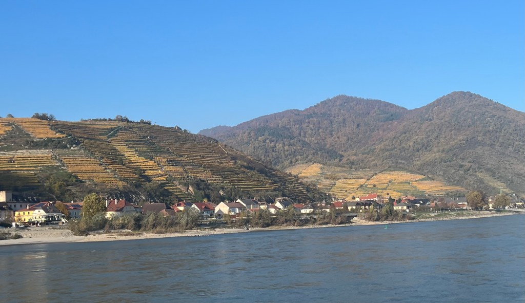 After leaving Melk and its Abbey, we were treated to a scenic cruise of the Danube River’s Wachau Valley. Unlike the Middle Rhine, which was characterized by castles, this part of the Danube featured small towns with their vineyards, quaint buildings, and churches. Sections of the river in between the towns reminded me of Canada’s inside passage on Alaska cruises.