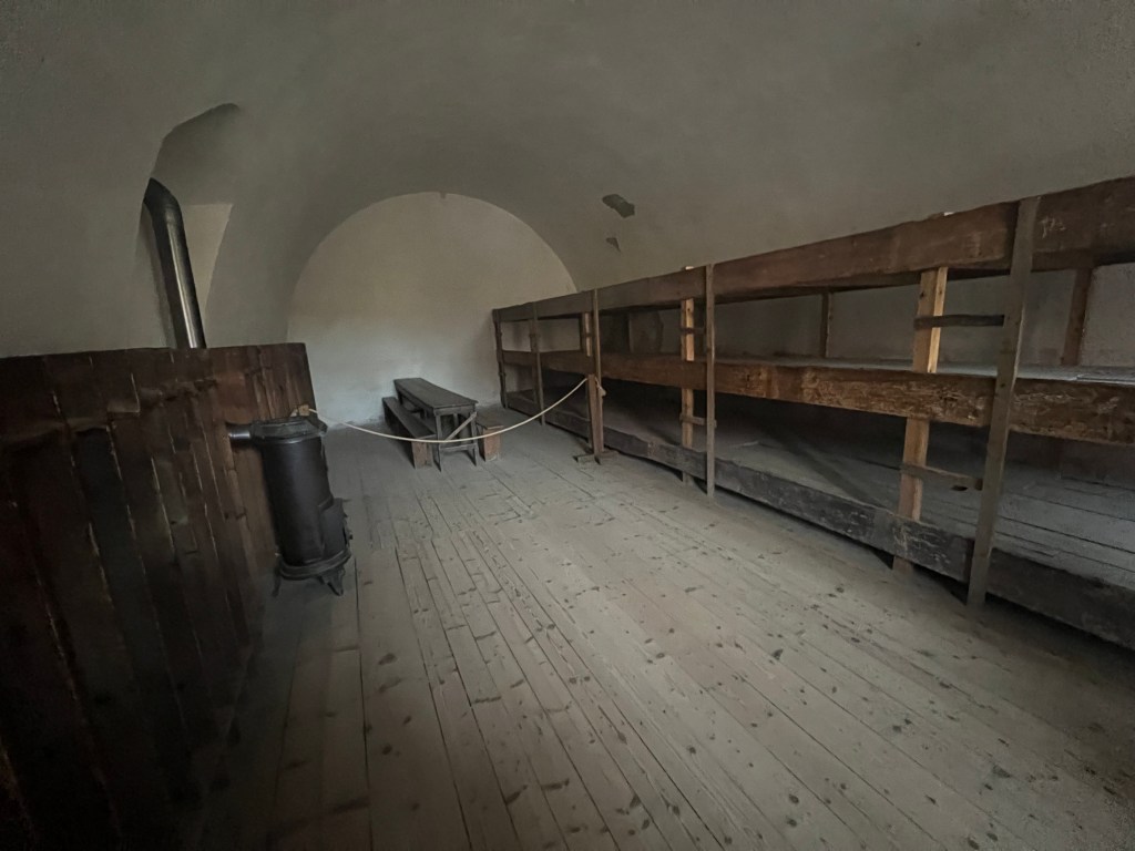 The Camp consisted of blocks of rooms which had wooden slats for sleeping. There were originally mattresses, which were eventually removed for bug infestations.
