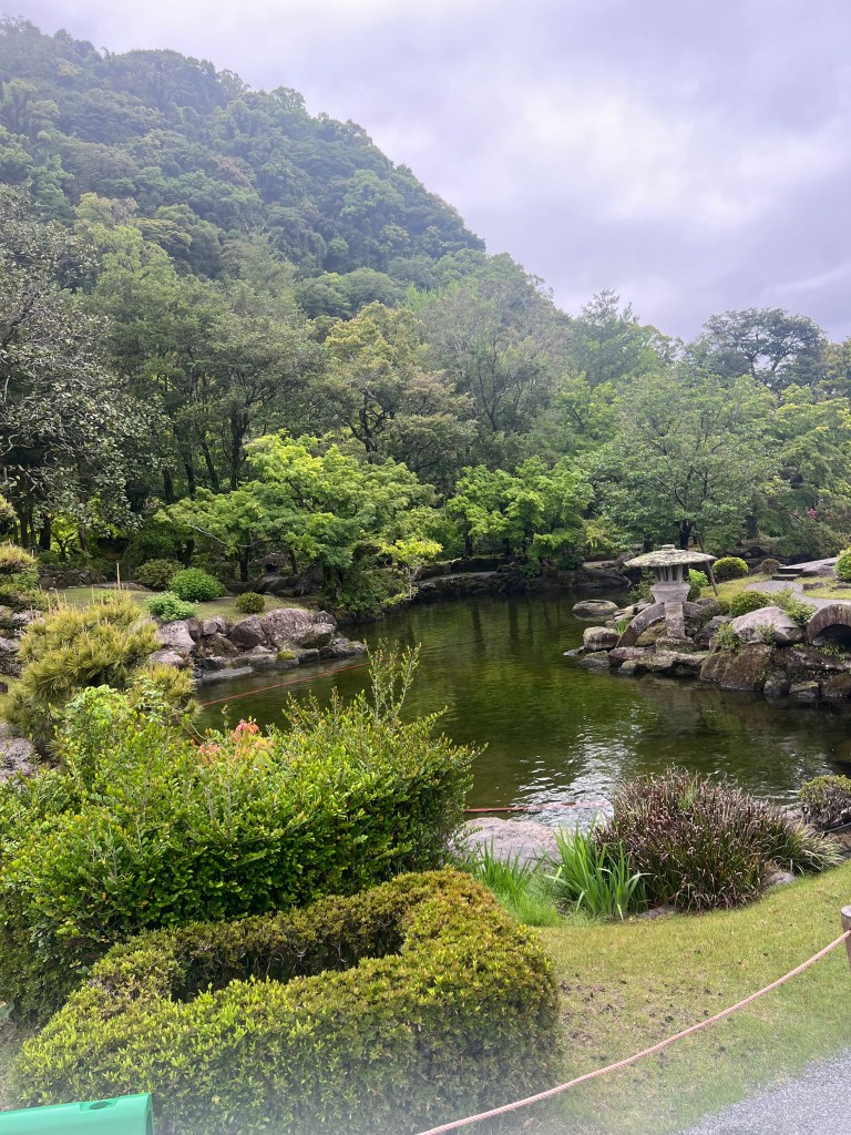 Mrs Bear was not interested in taking the shuttle to get a close look at the volcano, so we walked a lovely garden complex instead… the primary interest to me was their cat shrine. A local warlord took nine cats into a battle … with the smoke from the volcano and the battle, he could tell the time of day by looking into the cats’ eyes. Two of the nine cats survived, and judging from the fact that there is a cat shrine, they won the battle.