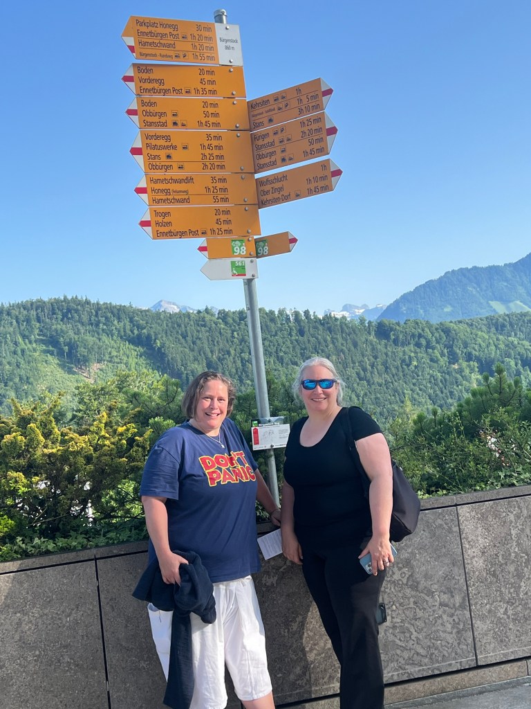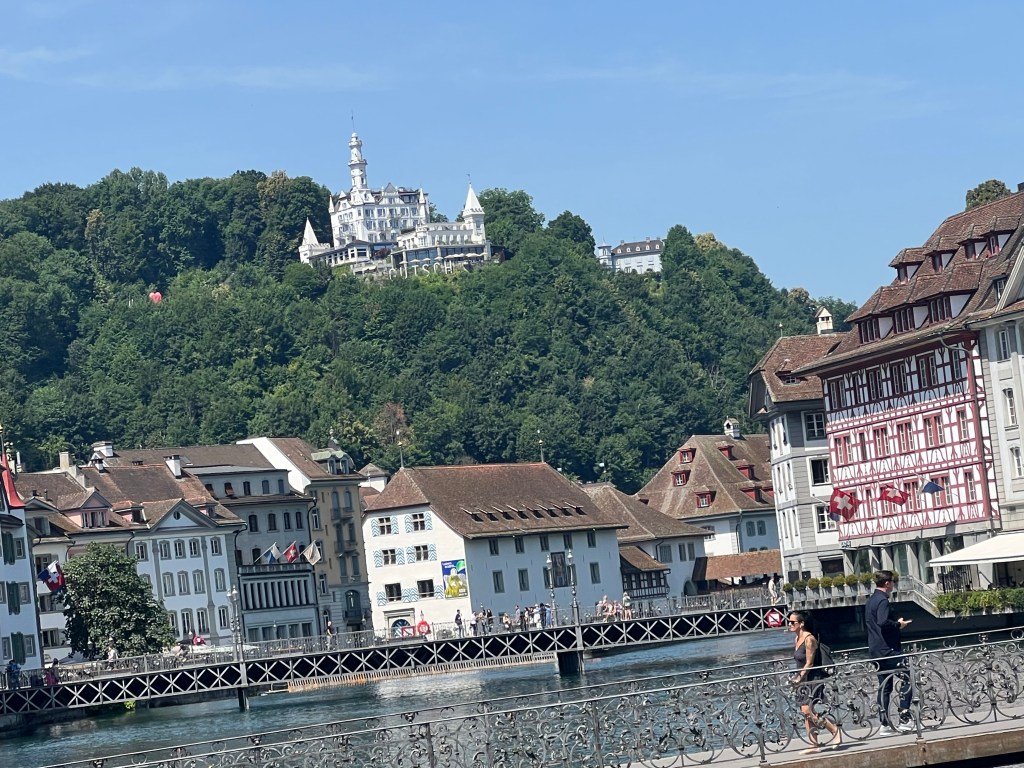 In our acclimation day, we walked around Lucerne, crossed its attractive bridges, and took a lake cruise to a cog railway that deposited us above the lake, looking down at the beginnings of the high meadows.
