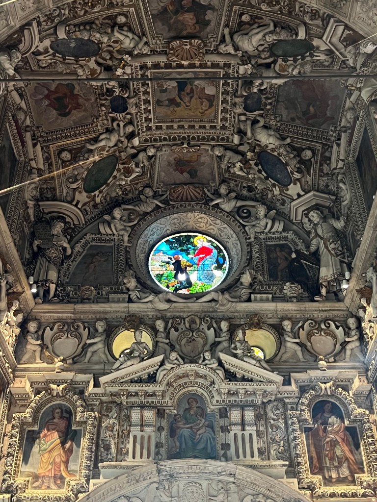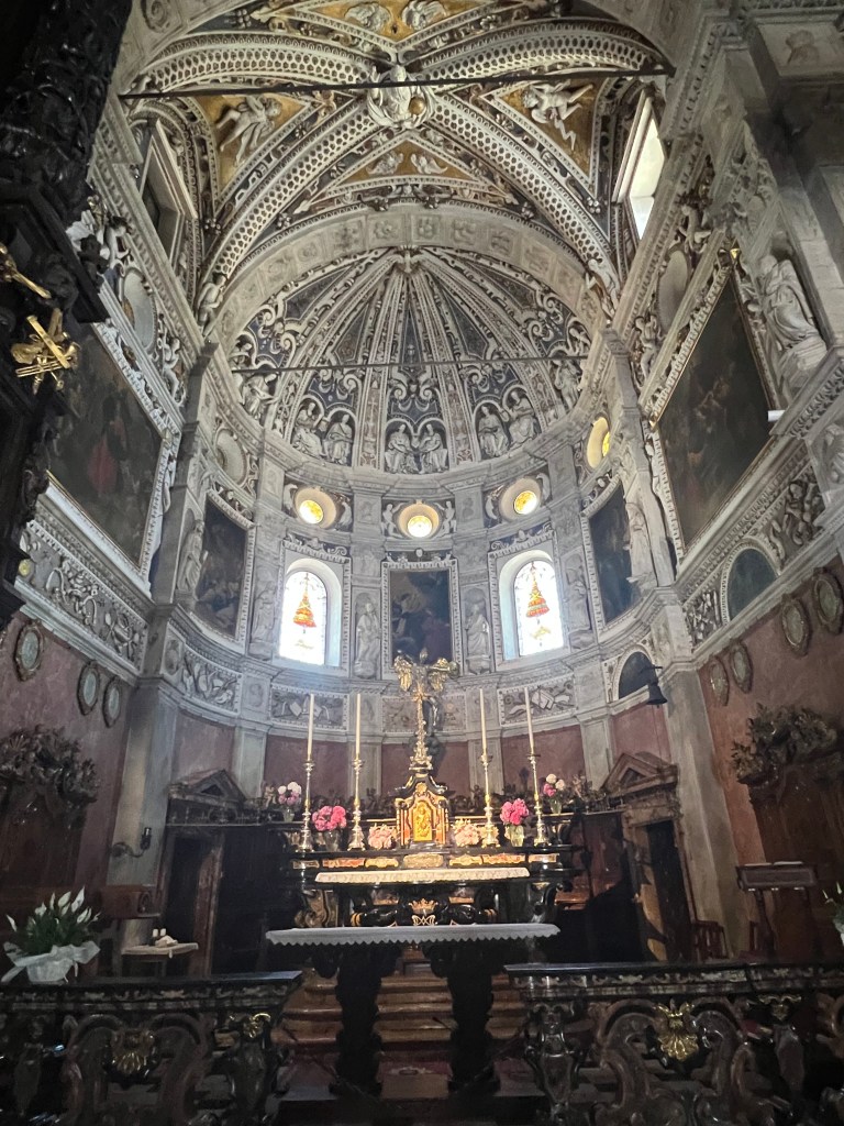 Another interesting sidelight of being in Italy was being introduced to the influences of the Roman Empire. In this case, it was the Roman road system. This route bordered the shores of Lake Como and followed an ancient roadway through the Alps for Roman trade routes. When we reached the end of our ride in Tirano, there was the remnants of the Roman road. The audio also provided information about a local church … it was reportedly built by a “date picker” at the direct request of the Virgin Mary. As a reward for his work, Mary stopped the Plague which was ravaging the countryside in the 12th Century. When the Cubs found out that this church was a ten minute walk from the pizza restaurant, they decided to walk up instead of eating. The pictures below are theirs.