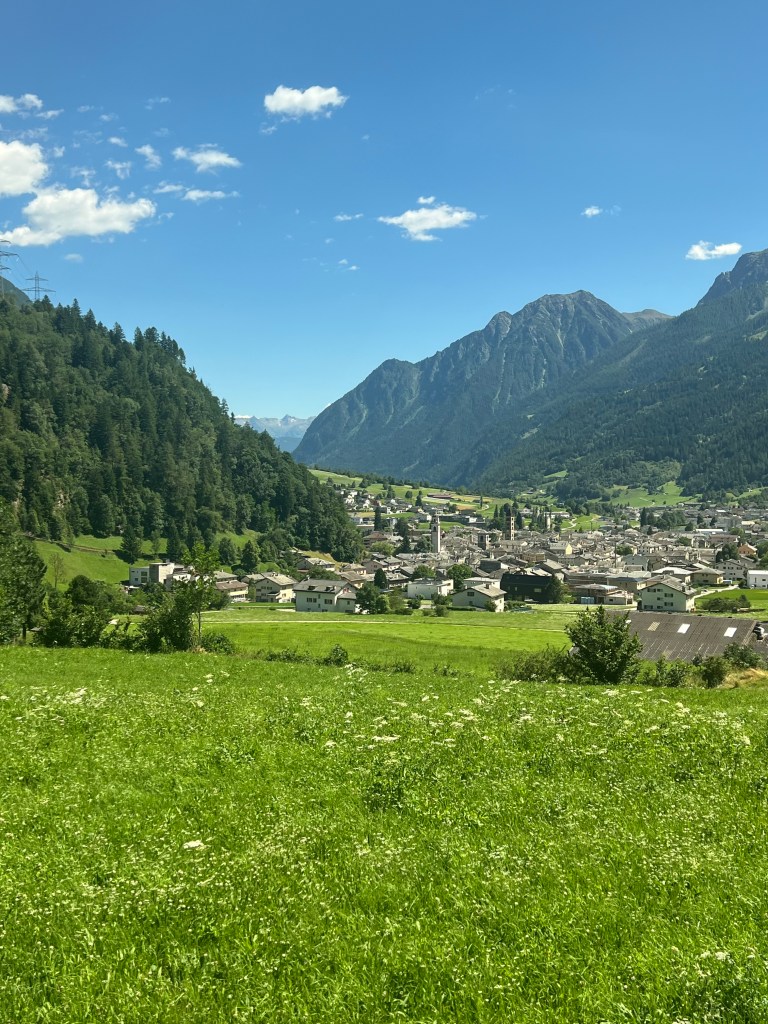 Then it was all downhill through the pass to St Moritz. In this final stretch, the train route paralleled the road, walking, and bike paths.