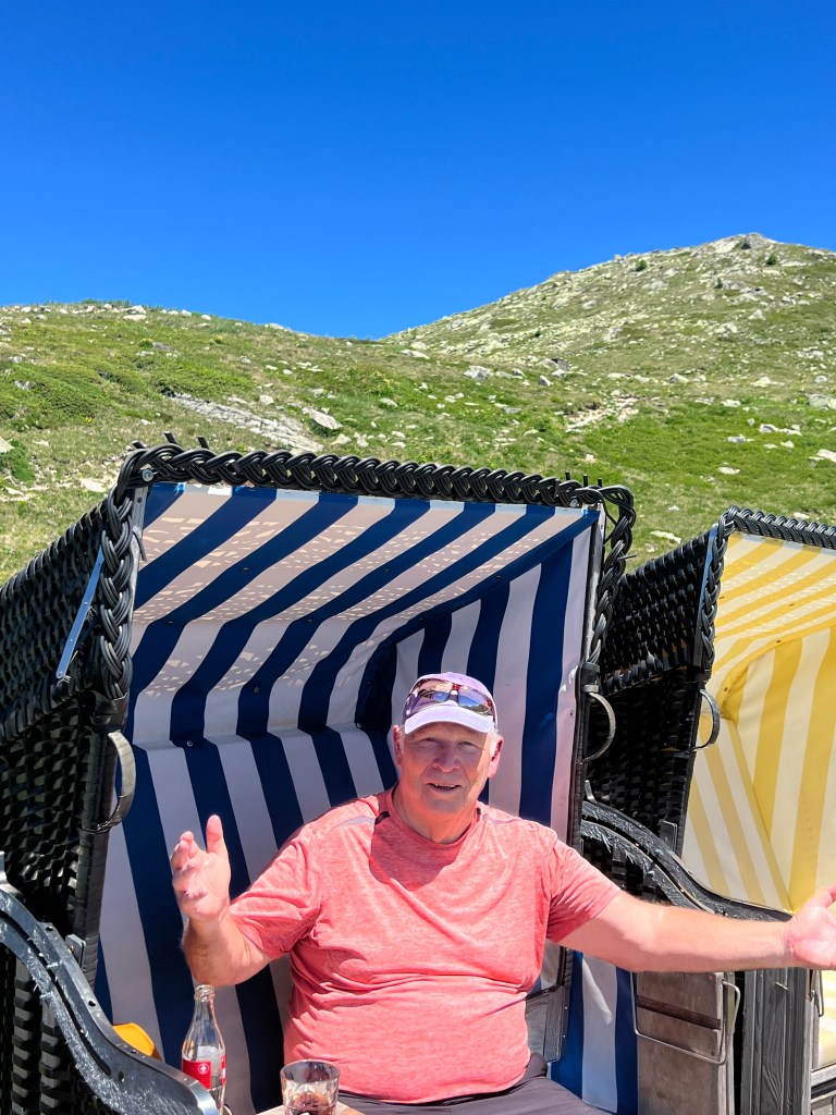 I found a great seat and waited for Mrs Bear to finish her walkabout. Many hikers ride up these lifts and go out on a network of trails in the high mountains. It looked like a hiker could take on anything between a half mile and 10+ miles. Mrs Bear fondly states that this is Switzerland … the locals walk. I waited for Mrs Bear with half a soda and asked her to snap a pic: