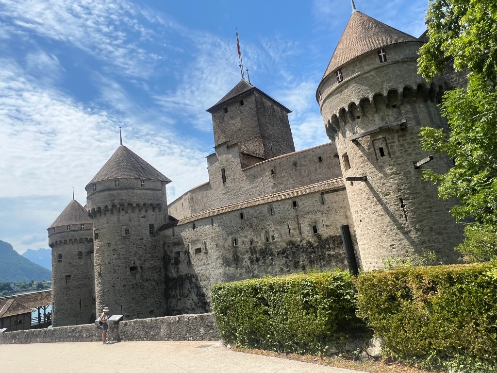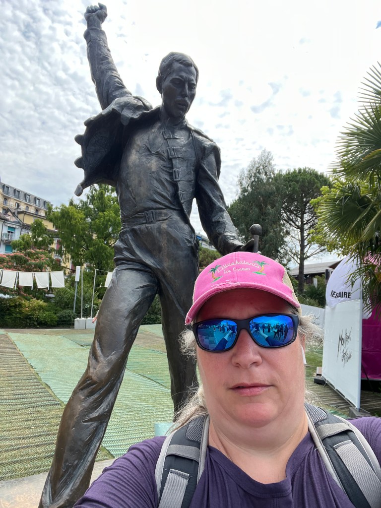 So we arrived in the city of Montreux on the shores of Lake Geneva for lunch and a couple hours of walking the shoreline. This dismayed my elder cub who is a “ water person “ who wished we could have stayed longer. The lake was huge and beautiful but the views were obstructed somewhat by the temporary construction of stages and lakeside eateries for a big jazz festival. In fact one of the tourist attractions is a statue of Freddie Mercury who performed at this festival early in his career.