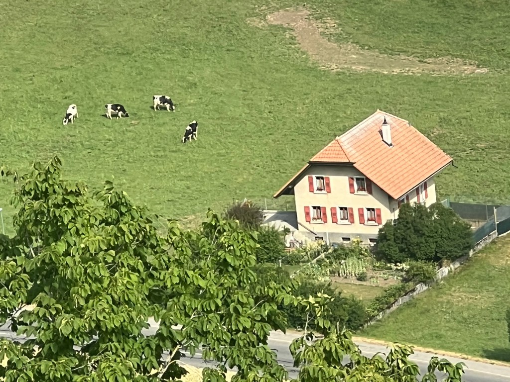 But a couple trains and a couple hours later, we arrived at our guide’s favorite part of the tour: mountains, cows, and cheese … in the medieval village of Gruyeres, where the cheese of the same name comes from. It is 2600 feet above sea level on top of a hill. The town still has its existing fortification walls. Only 600 families live in the town, with many more in surrounding villages. Tourism is its bread and butter, attracting many for a one day visit.