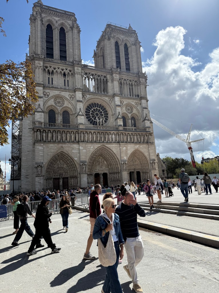 But back to our choice of Paris … It is located in Central Europe, has many airlines who fly there from a multitude of other cities on nonstop flights, and it never gets old visiting here. It has attractions that can be visited repeatedly without wearing out your welcome. I asked our guide how long it would take to fully tour the Louve, and he replied “a month.” which would be a lot of layovers !! This trip, we visited Cathedral Notre Dame and got partially caught up on its restorations.