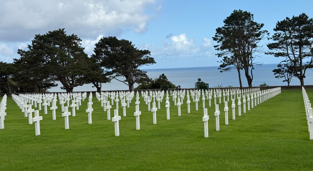 The Cemetery is immaculately kept and seems almost holy. A very stupid comment was made by our President, who really did not want to visit here, that the cemetery was full of “ suckers and losers. “ I am reluctant to use the word “ hero. “ Rather it seemed to me the the Cemetery contained young men who were willing to make the ultimate sacrifice and were probably scared shitless. I felt honored to spend a little time with them.
