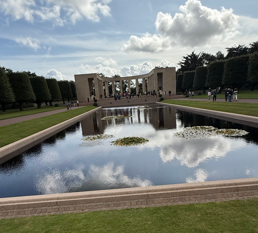 The top photo shows the walk into the Cemetery, the second shows the Hall of Remembrance, and the third shows a small part of the Cemetery. Omaha Beach can be seen in the back of the third photo. Originally American dead were buried in a different cemetery. This site was established in 1956 and has roughly 18,000 American dead. One grave is a WWI veteran. The rest died during the beach landing. Last year, there were 18 additional funerals as the remains of soldiers continue to be found and identified. Families are then given the choice of having their loved ones returned home or buried at Normandy. The Cemetery contains roughly 180 acres of graves.