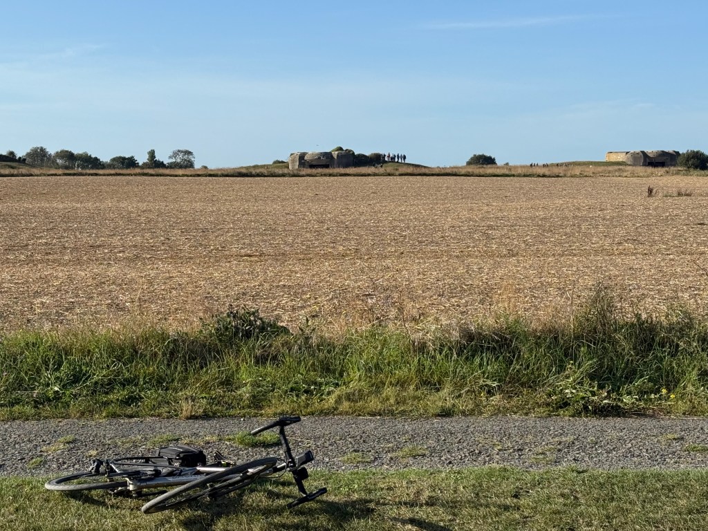 On our first full day of biking, we made our way to Omaha Beach for a tour of the beach, fortifications, and memorials. Omaha was one of the two beaches where American soldiers waded ashore to heavy initial losses and established a beachhead on French soil. The picture above shows German fortifications for cannon that were capable of accurate firings up to a half mile away.o